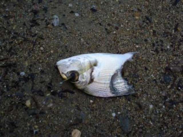 μικρή τσιπούρα θύμα γοφαριών,ξεβράστηκε ζωντανή στην ακτή!